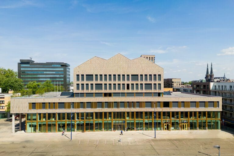In samenwerking met BINX Smartility leverde WEBO de HSB-elementen, buitenkozijnen en gevelbekleding voor de transformatie van het voormalige Stadskantoor naar een moderne Stadswinkel. Deze ontmoetingsplek voor burgers en de overheid is één van de eerste transformaties die volledig circulair en biobased is uitgevoerd. Demonteerbare elementen werden ingezet om afval te minimaliseren en materialen te hergebruiken. Om de duurzaamheidsdoelstellingen van de gemeente Tilburg te behalen koos de architect voor prefab HSB-elementen met Accoya®-kozijnen, aangevuld met houten gevelbekleding.