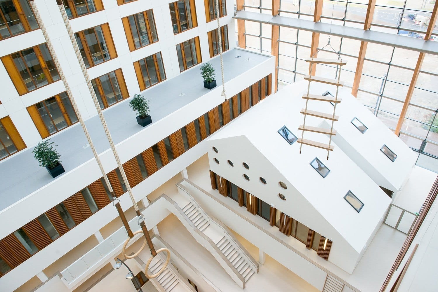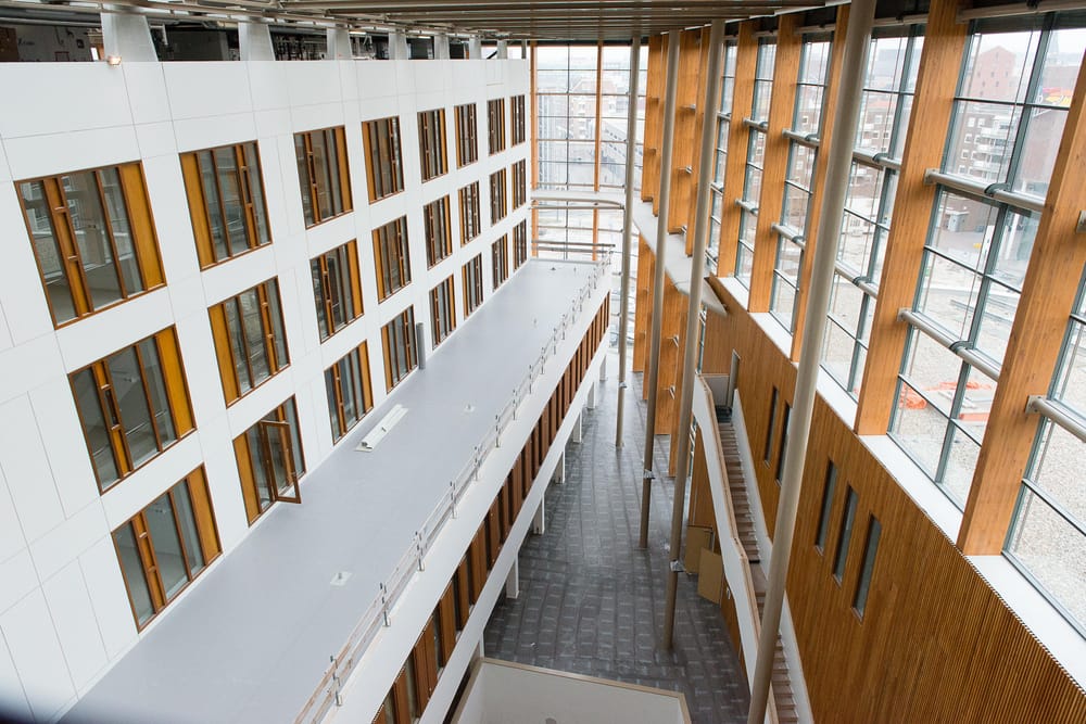 Ons productieproces is volledig geautomatiseerd en wordt rechtstreeks vanuit het BIM-model aangestuurd. De gewenste houten kozijnen kunnen wij eventueel prefab in de HSB- en Steigerloos®-elementen plaatsen.