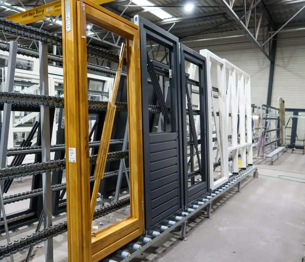 We kunnen de deuren in de fabriek compleet voorzien van glas, aflak, beschermfolie en 6-1- jaar SGT-garantie. Bij uiteenlopende projecten plaatsen we de raam- en deurkozijnen prefab in onze HSB- en Steigerloos®-elementen, voor de meest korte bouwtijd.