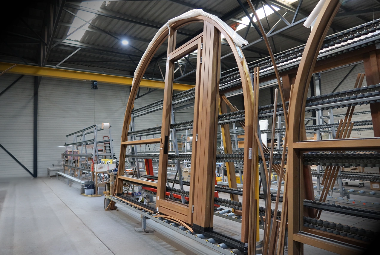 Ons productieproces is volledig geautomatiseerd en wordt rechtstreeks vanuit het BIM-model aangestuurd. De gewenste houten kozijnen kunnen wij eventueel prefab in de HSB- en Steigerloos®-elementen plaatsen.
