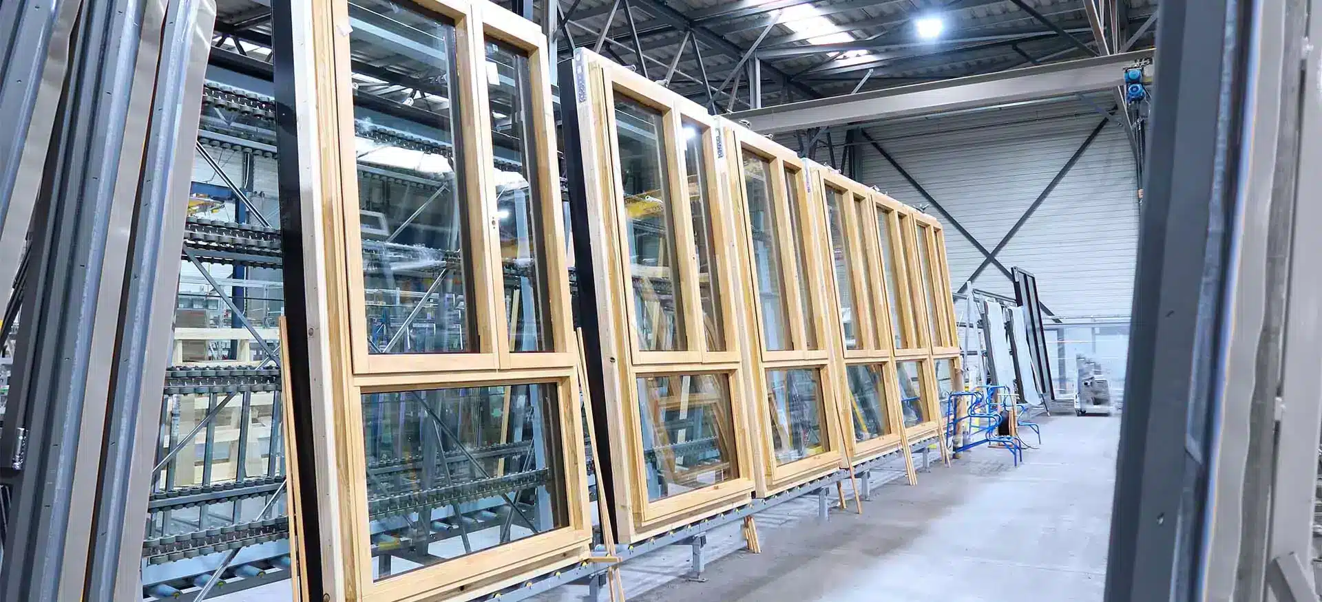 Ons productieproces is volledig geautomatiseerd en wordt rechtstreeks vanuit het BIM-model aangestuurd. De gewenste houten kozijnen kunnen wij eventueel prefab in de HSB- en Steigerloos®-elementen plaatsen.