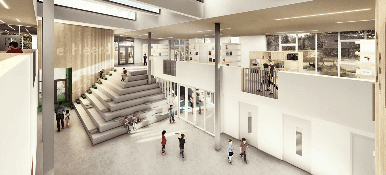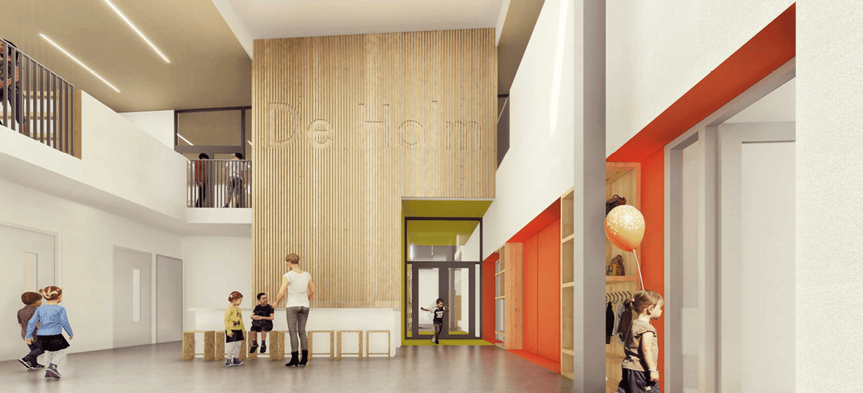 IKC Berkelwijk Leusden | In opdracht van Stichting Voila mocht WEBO meewerken aan dit mooie nieuwbouw project. Een Integraal kindercentrum waar WEBO HSB-elementen mocht leveren. In dit Integraal Kindercentrum zitten meerdere gebouwen, zoals 2 basisscholen en een kinderopvang. Het gebouw is verdeeld in bovenbouw en onderbouw. Ook zijn er leeftijdscategorieën, zoals 0-6,6-9 en 9-12 jaar zo is dat in drie bouwlagen verdeeld: de begane grond, een halve verdieping en de bovenverdieping.