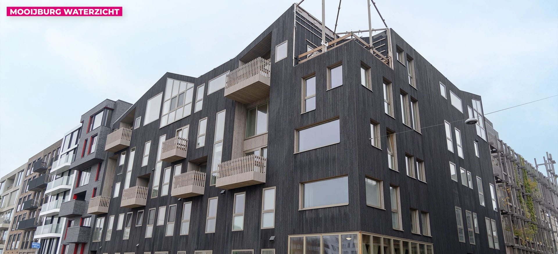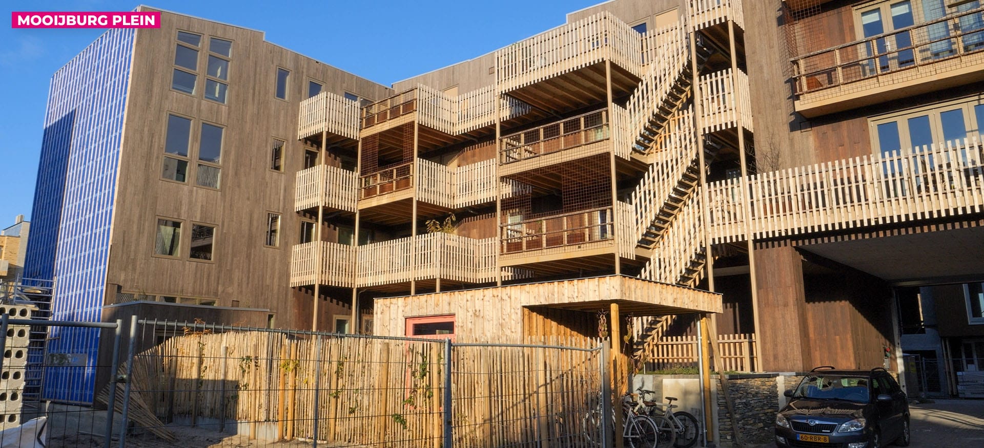 Voor blok 07-06 hebben we Steigerloos® Bouwen toegepast. Naast de 159 houten buitenkozijnen met ramen en deuren hebben we de elementen in de fabriek al van houten gevelbekleding voorzien. Voor dit blok zijn de gevels volledig voorzien van Moso Bamboo gevelbekleding. Doordat de elementen compleet in de fabriek afgewerkt zijn, konden we de elementen rechtstreeks vanuit de kraan monteren zonder tussenkomst van steigermateriaal.