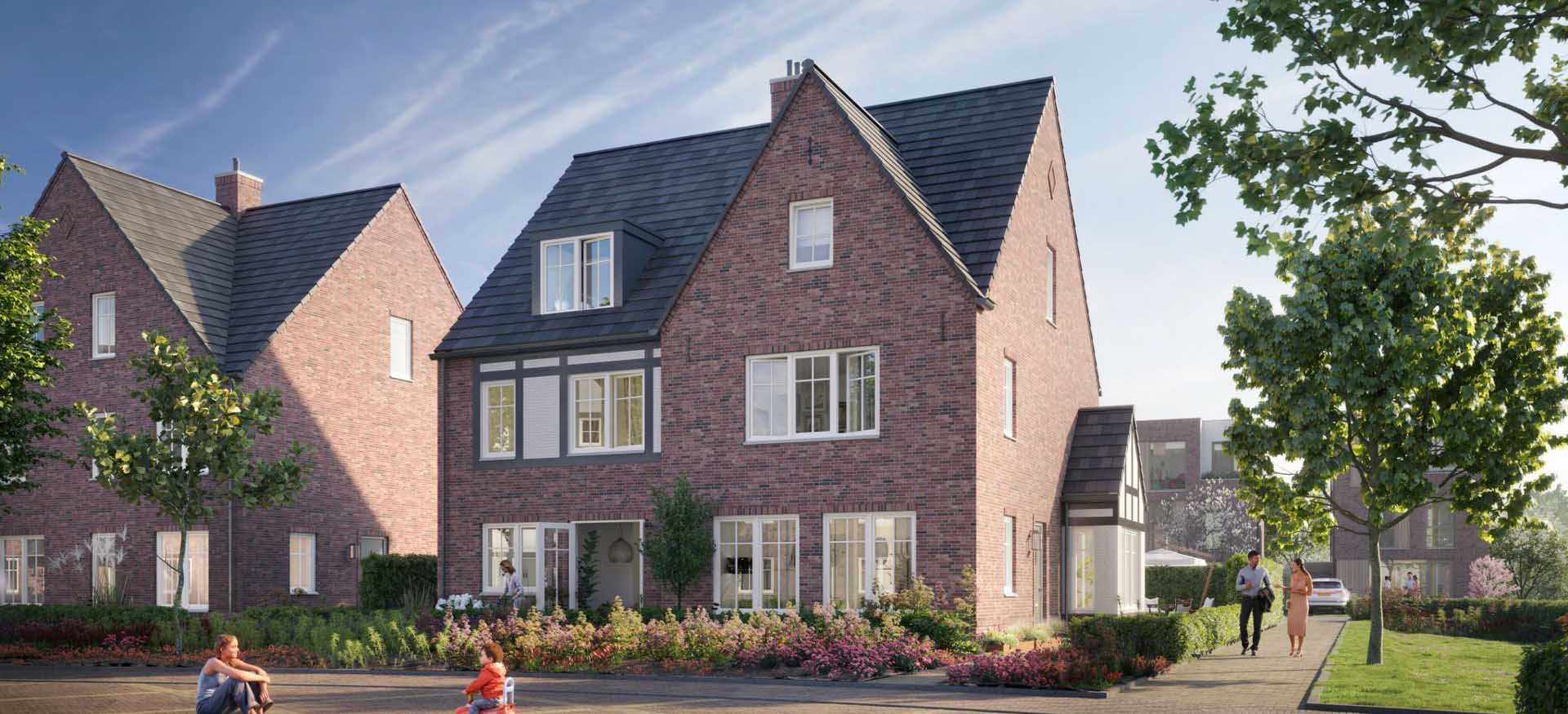 Variatie in entrees, luifels, veranda’s en gevelcomposities geeft elke woning een eigen karakter, terwijl de consequente toepassing van warme baksteen, hout en natuurlijke tinten zorgt voor onderlinge samenhang. De opzet van de wijk stimuleert ontmoeting en verbondenheid, met parkjes, waterstructuren en voorzieningen als een school en sportvelden op loopafstand.