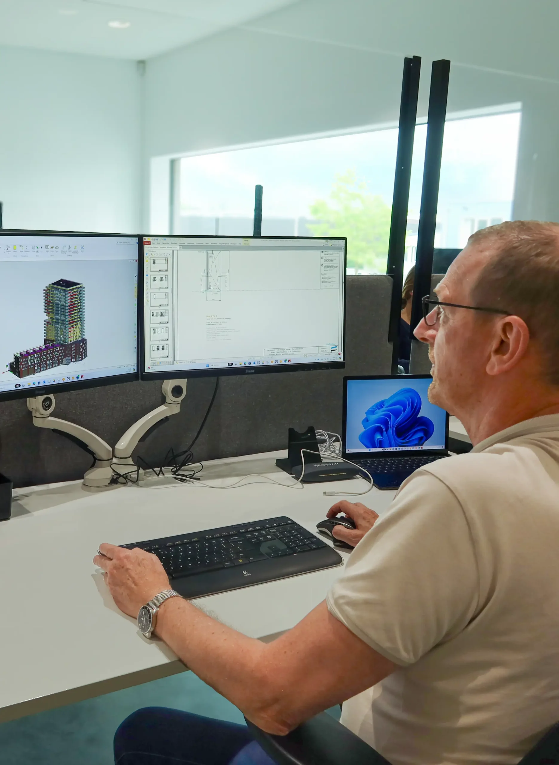 Daarnaast bieden HSB-elementen een hoge ontwerpvrijheid. Gevelindelingen, sparingen voor kozijnen, installaties en variaties in afwerking kunnen vooraf in het BIM-model worden geïntegreerd. Hierdoor is deze bouwmethode bijzonder geschikt voor de transformatie van kantoorgebouwen, waarbij maatwerk en nauwkeurige aansluiting op bestaande structuren cruciaal zijn.